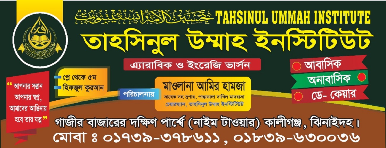 Tahsinul Ummah Institute was established in 2025 with a dream to demonstrate the model of an institution of human development through quality education. In order to meet the challenges of the 21st century and to develop talent and build a self-confident good citizen of morality, science-based class activities, systematic education, regular tests, continuous practice, modern teaching materials are used to teach, politics and smoke free, safe and orderly education environment.